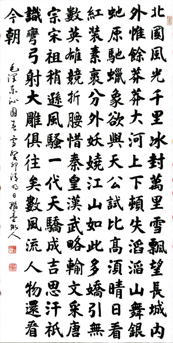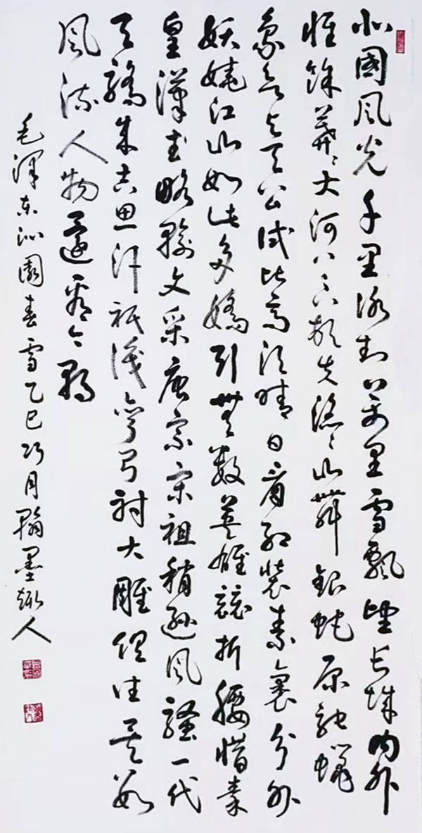 他坚持深入生活、感悟艺术的创作路径,潜心研习使其兼具扎实功底与创新精神。作品既承载深厚的传统底蕴,又饱含现代诗意,形成景致与情怀、雄迈与灵动和谐统一的风格。其作品笔法凝练刚柔相济,章法严谨韵律生动,点画顿挫间兼具奔放与含蓄之美。
