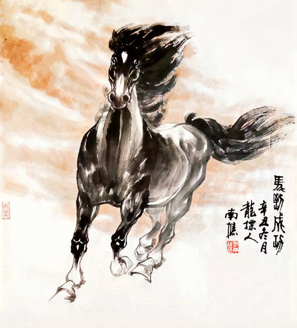 邓南樵融写意豪放与工笔细腻,勾骏马筋骨,作品墨色相宜、线条刚柔并济,兼传统“以形写神”笔意与时代气息。