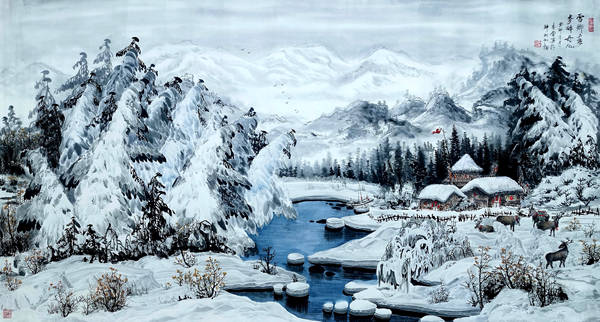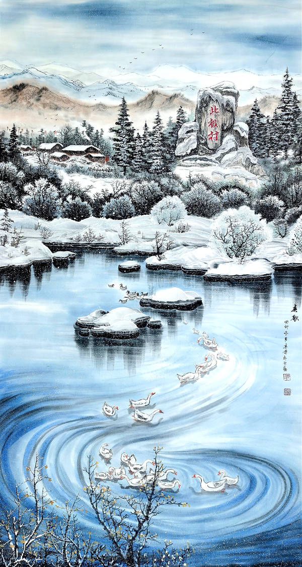 立足于自然生态,尊崇于自然道法,将天然冰雪揉进矾墨与白纸之间,用笔墨定格北部边陲的自然本态。