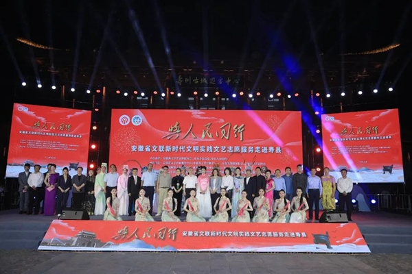 5月18日,由安徽省文联、寿县县委、寿县人民政府主办的“与人民同行”——安徽省文联新时代文明实践文艺志愿服务走进寿县专场演出在寿县古城举行。来自省级相关文艺家协会与省城演出团体的文艺志愿者们,与当地文艺工作者同台献艺,联袂奉献了一道精彩的文化大餐。