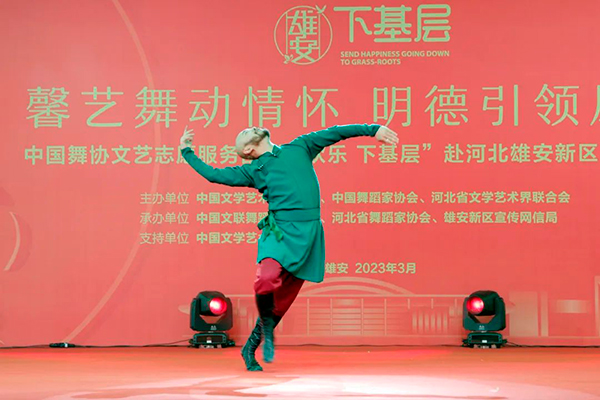 3月15日,“馨艺舞动情怀 明德引领风尚”中国舞协文艺志愿服务团“送欢乐·下基层“赴雄安新区慰问演出举行。中国舞协分党组成员、秘书长夏小虎,中国舞协分党组成员、副秘书长柳斌,中国文联舞蹈艺术中心常务副主任张萍,河北省文联党组成员、副主席张海英以及张新茹、边建国、陈峰、张国鑫等主承办方相关负责人与现场观众共同观看演出。