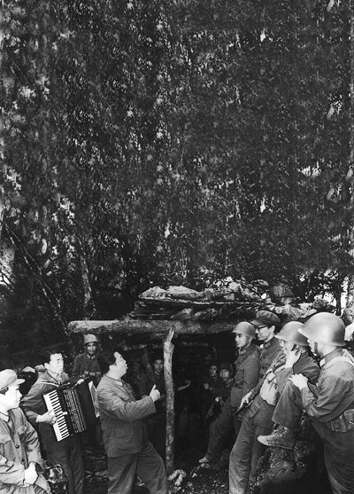 李双江在老山前线猫耳洞前为战士演唱