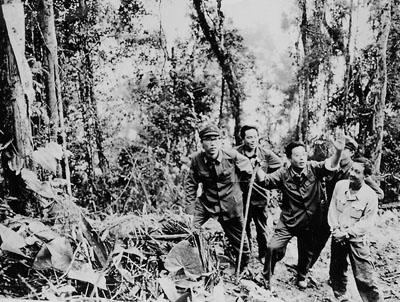 李双江在前线慰问演出的行军途中