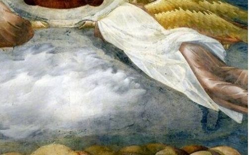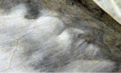 在这幅教堂顶部壁画绘画的云层中隐藏着一张魔鬼面孔,这幅壁画描绘的是圣弗朗西斯轮回转世的情景。意大利艺术历史学家奇亚拉-弗鲁冈(ChiaraFrugone)发现了其间的奥秘,仔细观察可发现在云层位置绘有魔鬼的鹰钩鼻子,狡猾的笑容,一对暗色的角隐藏在云中。