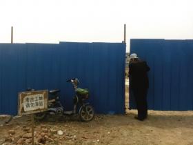 4月16日中午,扬州隋炀帝墓发掘现场,闻讯而来的市民欲进入施工场所一窥究竟,被围挡挡在外面。图/记者吴通清