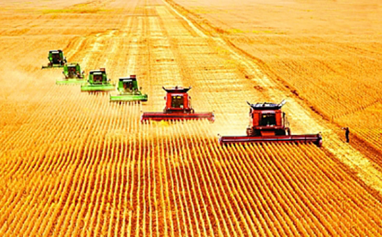 黑龙江省大机械联合收割大豆场景。徐宏宇摄/光明图片