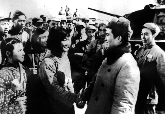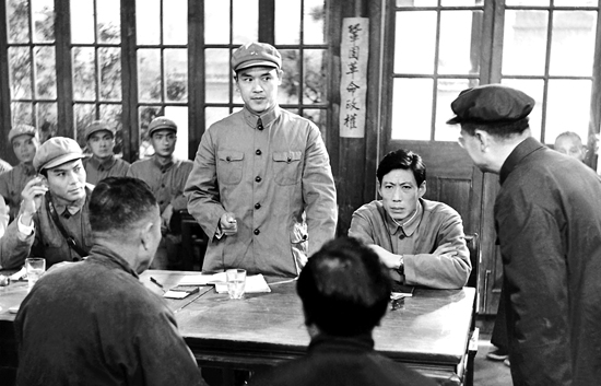 最值得一提的是1961年拍摄的《红日》。因为这是一部歌颂毛泽东军事思想的电影,部队方面的意见非常重要,首长要求强调我军“先打烂葡葡,再砸硬核桃”由弱转强的过程,表现山东老百姓用小推车推垮60万敌军的精神。而夏衍、陈荒煤则要求突出人物性格,强调战争中的人性,他们的想法和部队首长们正好对立。汤晓丹处在夹缝中,只能默默承受压力。