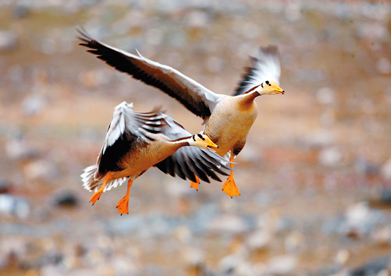 第三次的“躲”最危险。当时他在青海湖畔“潜伏”,突然看见一只对角羚跑过来,不想身后居然跟着5只野狼!他没敢动,群狼的攻击性实在太可怕了。然而,当对角羚距葛玉修只有30米时,仿佛看到了他,也许是为了保护自己的“保护神”,它突然急转弯,向葛玉修的侧方狂奔,狼群全神贯注地尾追远去,葛玉修这才幸免于难。后来,他向影友“吹牛”:“如果当时狼真的咬住我的腿,我就能零距离地拍它几张特写,肯定能获奖!”