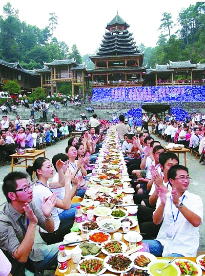 富有地方特色的通道县万人合拢宴