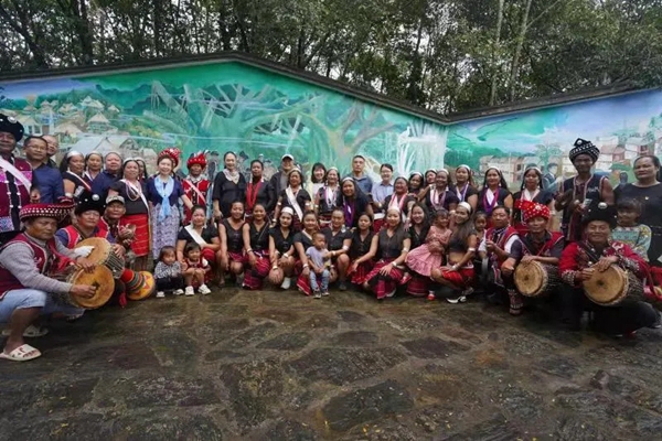 采风媒体团队与阿佤村民在“阿佤人民唱新歌”发源地合照