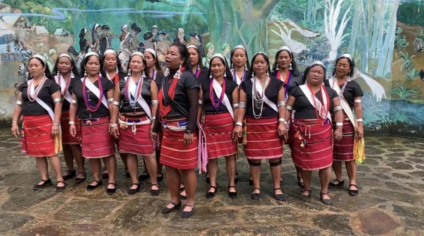 西盟佤族自治县佤族村民在唱歌