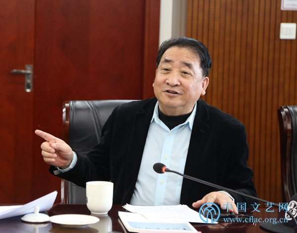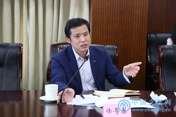 4月29日,由中国文艺评论家协会、中国曲艺家协会、中国文联文艺评论中心主办的田连元《话说党史》评书创作研讨会在京召开。图为中国文艺评论家协会副主席兼秘书长、中国文联文艺评论中心主任徐粤春主持会议。