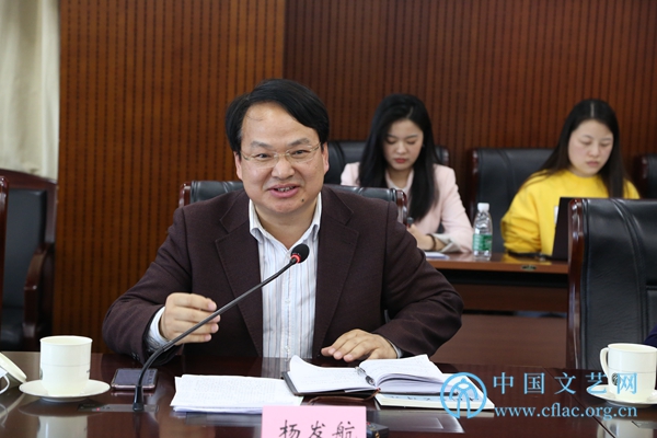 4月29日,由中国文艺评论家协会、中国曲艺家协会、中国文联文艺评论中心主办的田连元《话说党史》评书创作研讨会在京召开。图为中国曲艺家协会分党组书记、驻会副主席杨发航在会上讲话。