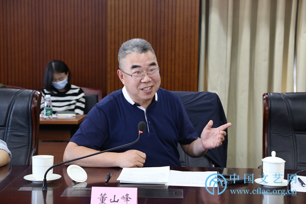 4月29日,由中国文艺评论家协会、中国曲艺家协会、中国文联文艺评论中心主办的田连元《话说党史》评书创作研讨会在京召开。图为中国文艺评论家协会会员,光明日报《博览群书》杂志社社长、主编董山峰在会上发言。