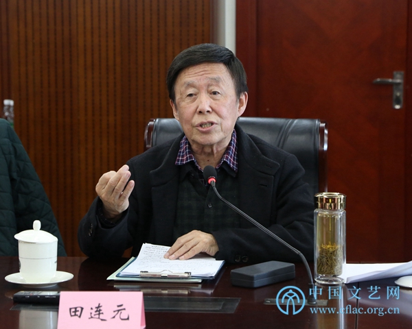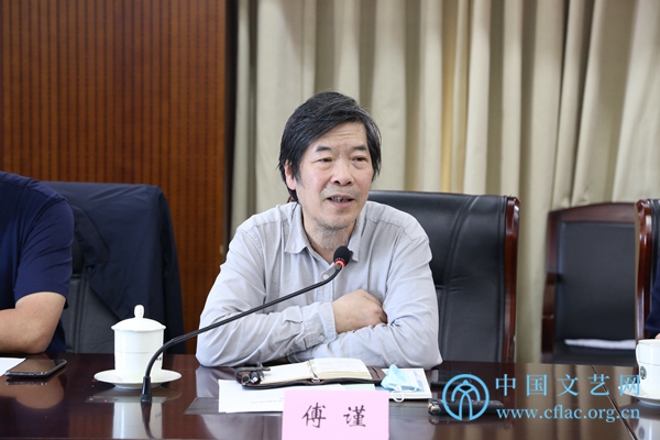 4月29日,由中国文艺评论家协会、中国曲艺家协会、中国文联文艺评论中心主办的田连元《话说党史》评书创作研讨会在京召开。图为中国文艺评论家协会副主席、舞台艺术委员会主任傅谨在会上发言。
