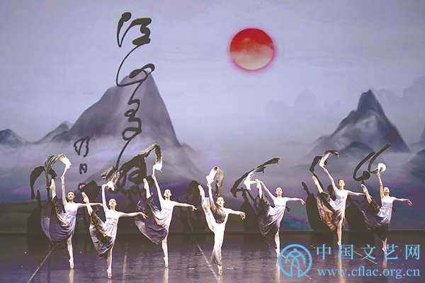 舒均均不仅是中国书协首任主席舒同先生的千金,也是北舞毕业、中芭成长的资深编导家。从她1985年初出茅庐的大型芭蕾舞剧《觅光三部曲》、1986年的《黄河》双人舞、1988年的独幕芭蕾舞剧《兰花花》、1997年的大型芭蕾舞剧《二泉映月》,直到2011年在第二届“芭蕾创意工作坊”推出的《心灵密码——我和我的父亲》,以及此番奉献的芭蕾诗剧《舒体之魂》节选版,年届75岁的她可谓宝刀不老,创意不断……整个作品虽然只有“父亲”这一位男主角,却为他安排了戎装“老红军”和便装“书法家”的双重身份,并以“中华女神”的女子独舞、“墨韵仙子”的男子独舞,以及16位演员的墨韵仙子群舞,为整个作品创造出一个虚实相生的想象空间,由此展示出这位成熟编导家对舞中人物和舞台空间的运筹帷幄。与11年前的《心灵密码——我和我的父亲》相比,这个作品不仅在规模上,从那段表现父女亲情的双人舞拓展成了11年后的诗剧,而且在审美上拉开了某种“距离即美”的广阔空间,更在传播上创造出更大的受众群体。与此同时,舞台天幕上那高悬的一轮红日、流动的云雾山川、飞舞的凤凰和蛟龙、舒爸爸自成一体的经典话语等丰富的视频效果,均为整部作品增添了呼之欲出的立体动感。