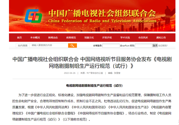 2022年4月26日,中国广播电视社会组织联合会、中国网络视听节目服务协会发布《电视剧网络剧摄制组生产运行规范(试行)》。其中指出,剧组应建立演职人员职业道德考评制度;严格规范电视剧片酬合同管理,严禁“阴阳合同”、“天价片酬”、偷逃税等违法违规行为;不得恶性竞争,不得以演员为唯一议价标准,坚决遏制索取和哄抬高片酬的不良行为等。