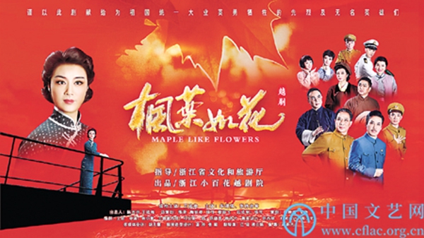 “层林染,万山红遍,化朝霞,不惧秋寒。枫叶如花花胜火,点亮锦绣川。情浓处,血染霜天,叶落时,与根同眠。一世情缘生死恋,丹心暖人间。”这是红色谍战题材越剧《枫叶如花》的主题歌,在交响乐的伴奏下,男女声二重唱响遏行云、荡气回肠,如火般的豪情、如花般的诗意抒发着对革命烈士傲霜斗雪坚贞品格的敬仰。主人公华枫以及她的战友们虽死犹生,化作片片似火如花的枫叶,裹着漫天的绚烂,点缀山川、温暖人间。