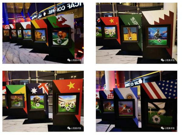 参展作品除在多哈AJ Jaber商业中心展出外,还通过投影的方式呈现于建筑外墙,用独具特色的艺术形式为世界杯“暖场”。