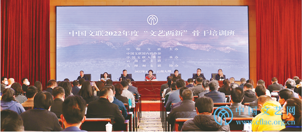 为切实发挥文联系统的组织优势、专业优势,进一步加强对“文艺两新”骨干的团结凝聚,提升“文艺两新”队伍的政治素养、创作能力、职业道德和专业水平,扩大培训覆盖、提升培训效率,11月7日至18日,中国文联国内联络部与中国文联人事部、云南省文联共同举办了中国文联2022年度“文艺两新”骨干培训班。培训班分线上线下两个阶段进行,11月15日至18日,线下培训在云南大理顺利举办。中国文联国内联络部主任谢力,中国文联人事部主任郑希友,中国文联人事部副主任岳颖,云南省文联党组书记、主席孙炯,云南省文联党组成员、副主席缪开和,大理州文联党组书记、主席汤培德等出席开班式。孙炯、汤培德在开班式上致辞,谢力作动员讲话。开班式由中国文联国内联络部副主任、一级巡视员苗宏主持。各全国文艺家协会、省级文联推荐的来自全国的“文艺两新”骨干代表、“文艺两新”工作和新文艺群体职称评审工作负责同志、大理州“文艺两新”代表等180余人参加培训。