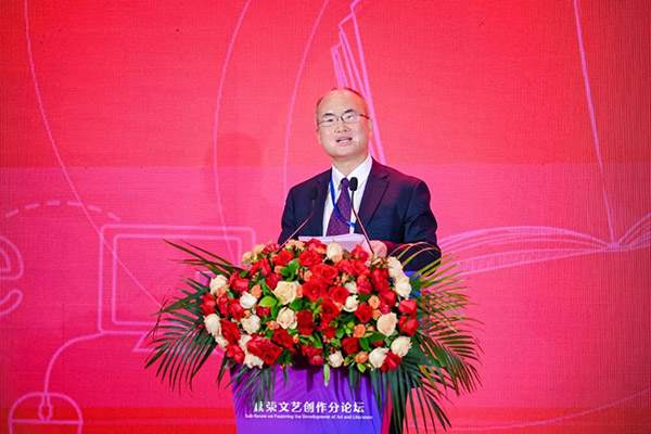 “新时代文艺最为耀眼的标识,就是网络文艺登上历史舞台。”中国文联网络文艺传播中心主任,中国文艺网董事长、总裁郝向宏在分论坛作演讲时表示,新时代网络文艺得到了蓬勃发展,是展现最多艺术形式的舞台,是拥有最多网络观众的剧院,是联通中外艺术交流的平台。