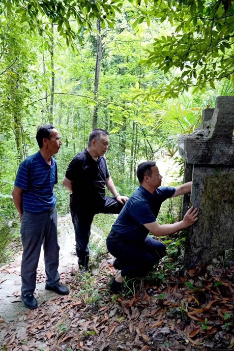 王跃文在湖南省张家界市永定区谢家垭乡高坪村考察清道光年间指路碑
