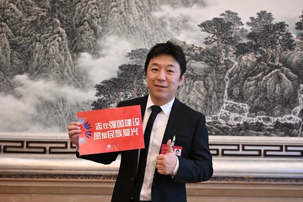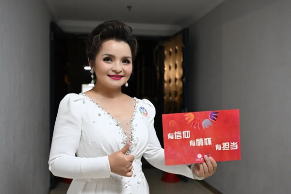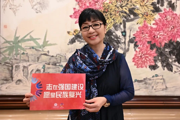 文艺志愿者殷秀梅、黄渤、林永健为“志在强国建设,愿是民族复兴”点赞。