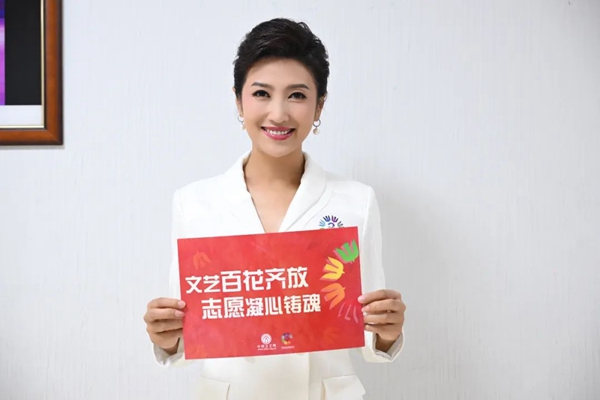 文艺志愿者李玉刚、任军(大兵)、徐春妮、朱迅为“文艺百花齐放,志愿凝心铸魂”点赞。