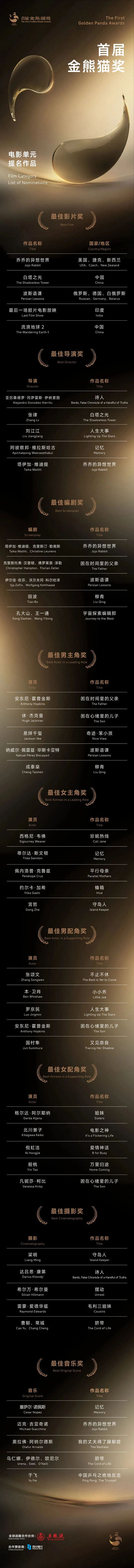 9月4日,首届金熊猫奖电影单元提名名单揭晓,将评选出最佳影片、最佳导演、最佳编剧、最佳摄影等共计9个奖项,涉及29部影片,超一半来自海外。其中,《乔乔的异想世界》《白塔之光》《波斯语课》《最后一场胶片电影放映》《流浪地球2》将冲刺最佳影片奖。获奖结果将在9月19日至20日金熊猫奖评选活动现场揭晓。