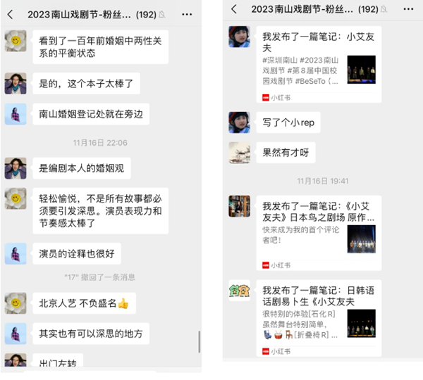 每场演出一结束,本届戏剧节的粉丝群中便展开热烈的讨论,大家探讨对剧情的思考,把自己撰写的长文分享到群聊中,不同的观点在方寸屏幕中碰撞出火花。“我比较欣喜的就是大家看完戏后讨论热情很高,这说明作品引发了大家的思考和共鸣,在思想碰撞中得到成长。”在唐灵依看来,国际性戏剧节一大特点就是多元。“不同文化背景的戏剧产生碰撞,令年轻人开阔眼界,看到其他国家的戏剧生态,在作品中产生共鸣,这是很重要的。”