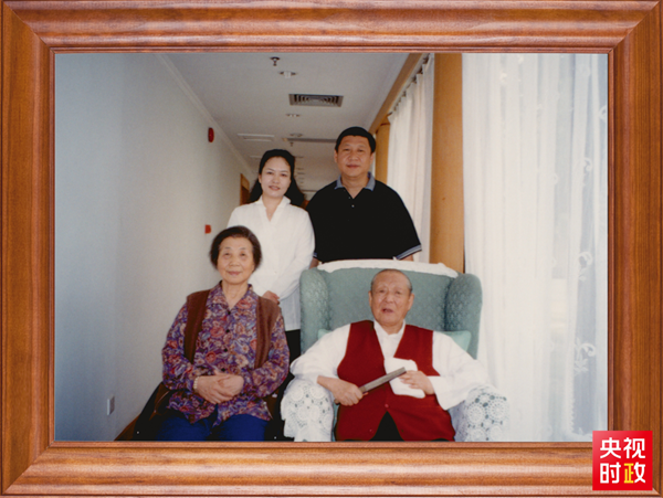 这是习近平夫妇同父亲习仲勋、母亲齐心的合影。这张照片第一次出现在他的书架上。