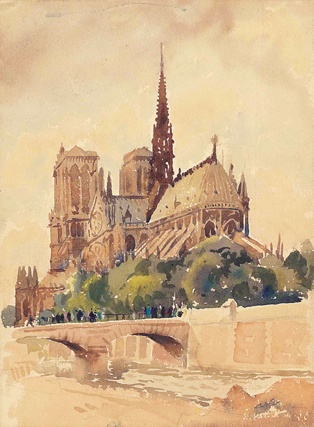 巴黎,巴黎圣母院(水彩) 童寯