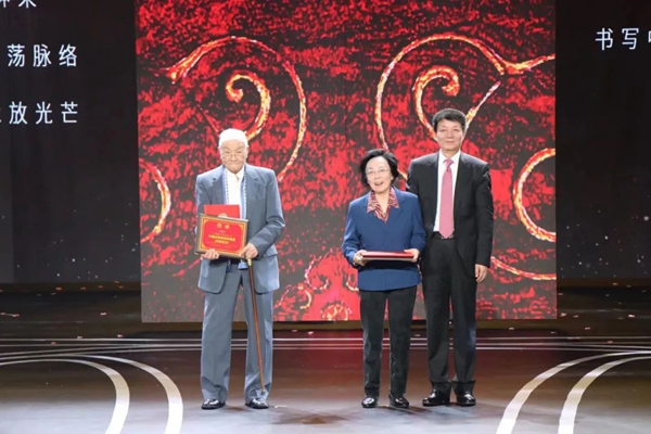张雁彬为杨先让、郎樱两位德高望重、贡献突出的民间文艺专家颁发“中国文联终身成就奖”,以表彰他们毕生扎根田野、坚守本源、传承文脉,致力于中国民间美术、中国民族文学作出的开拓性贡献。