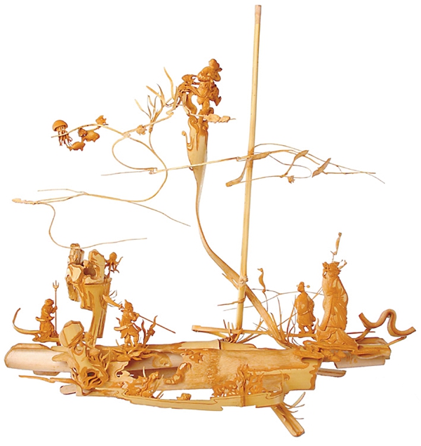 贝雕《龙凤呈祥舟》