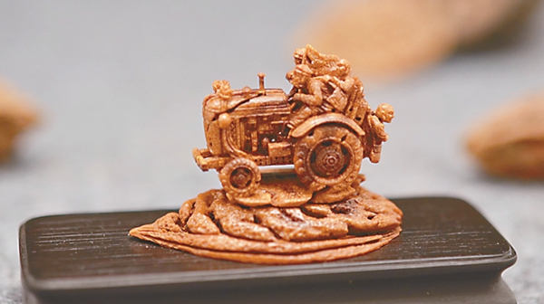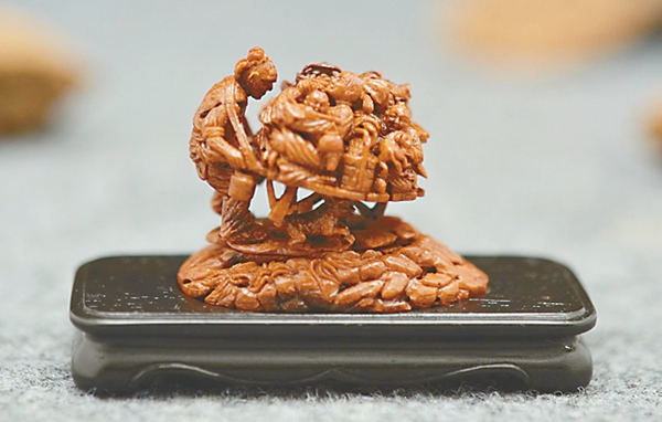 可以说,入围山花奖终评的民间工艺美术作品件件有可取之处,限于篇幅,本文就不一一评述了。最终获得民间工艺美术优秀作品的是《留给春天的种子》(皮雕)、《潮风百韵·一剪千华》(剪纸)、《古厝新韵》(石雕)、《涌》(刺绣)、《龙凤呈祥舟》(贝雕)、《法海寺造像系列》(刺绣)、《竹艺西游记》(竹根雕)、《那个年代》系列作品(核雕)。