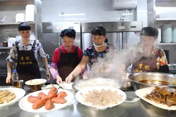 福建省三明市沙县区一家小吃店工作人员在为客人准备特色小吃。新华社记者 林善传 摄