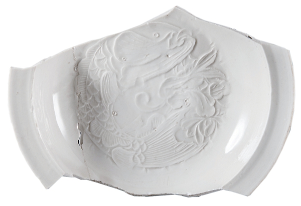 细白瓷鱼纹印花盘(元代)