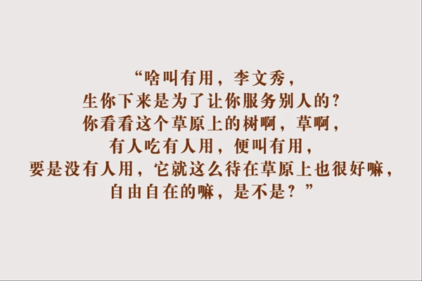 女儿李文秀为了给家里的小卖部要账四处碰壁,最终只收获了用来抵账的一头骆驼,她问妈妈:“你看,我虽然笨手笨脚,但我还是个有用的人对不对?”张凤侠给出了上图中的回答。