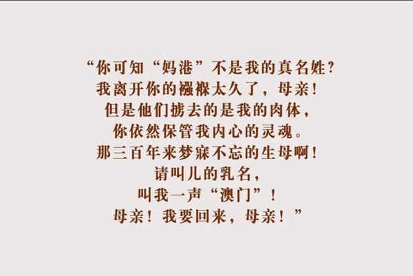1925年,闻一多有感失地同胞“失养于祖国,受虐于异类”,用拟人手法将先后割让租借出去的澳门、香港、台湾、威海卫、广州湾、九龙和旅顺大连七地各为一章,写下著名的组诗《七子之歌》,呼唤民众振兴中华。