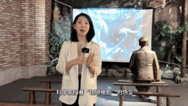 这个场景就是当时科研人员围坐在一起看“坝坝电影”的场景。“坝坝电影”就是找一块空地,大家拿着板凳围坐在一起看电影。他们看的影片都是大家耳熟能详的经典文艺作品:《地雷战》《地道战》《英雄儿女》《小兵张嘎》……出于安全和保密的需求,研究院地处偏僻,生活条件非常艰苦,科研人员的精神文化生活也比较匮乏,所以看“坝坝电影”就成了大家共同的期盼,从文艺作品中汲取力量,更好地投入到科研工作中去。