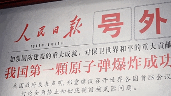 展厅里还存放着《人民日报》1964年10月16日刊发的号外,内容是我国第一颗原子弹爆炸成功以及中国政府发表声明指出:中国政府一贯主张全面禁止和彻底销毁核武器。中国发展核武器,是为了防御。中国在任何时候、任何情况下,都不会首先使用核武器。