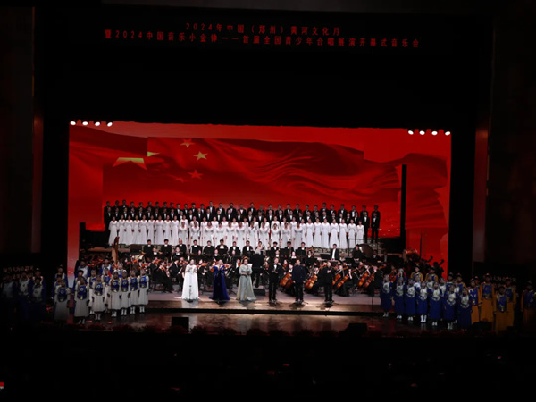 8月10日,由中国音乐家协会、河南省文学艺术界联合会、中共郑州市委宣传部主办的2024中国音乐小金钟——首届全国青少年合唱展演开幕式音乐会在河南郑州举行。图为音乐会现场。