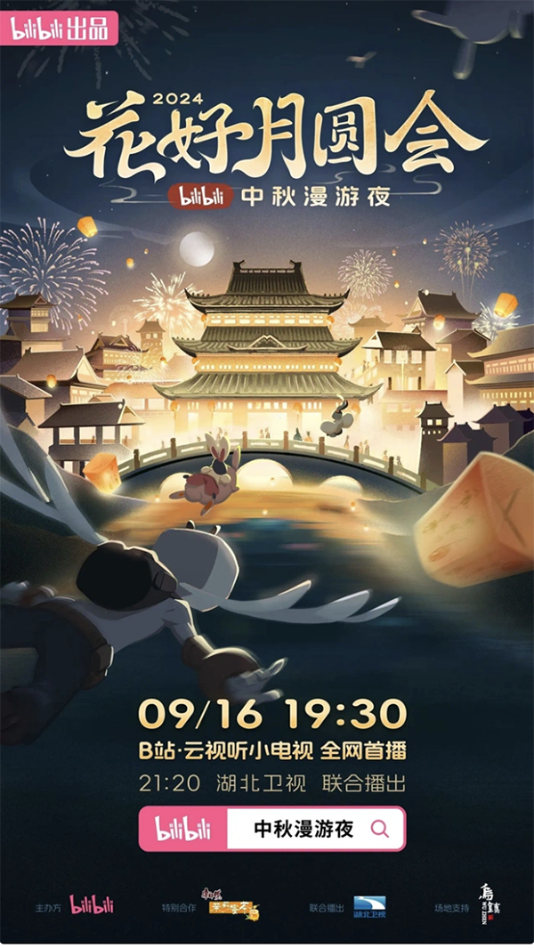 《花好月圆会——2024哔哩哔哩中秋漫游夜》通过热门游戏IP演绎、经典国漫IP呈现、传统艺术与流行艺术融合、实景舞台的创意呈现等,将中秋元素融入其中,赋予传统中秋节新的国风元素。