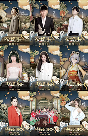 本次晚会特邀鞠婧祎与赖美云,扮演嫦娥与玉兔,两位仙子降临人间,带领观众穿梭于乌镇的古街小巷,感受中秋的全新庆祝方式。华语乐坛实力唱将胡彦斌将带来《红颜》和《月光》两首歌曲,蒋敦豪将献唱《金风玉露》,歌唱家谭晶将演绎两首古风圈著名歌曲。还有洛天依等12位B站UP主组成的12月神、致力于将民乐发扬光大的二十四伎乐等嘉宾阵容。