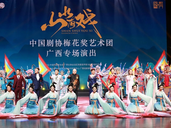 10月30日晚,由中国剧协、广西壮族自治区党委宣传部、桂林市委市政府主办的中国剧协梅花奖艺术团广西专场演出在桂林大剧院举行。广西壮族自治区人大常委会原副主任赵乐秦,广西壮族自治区党委宣传部副部长、自治区文化和旅游厅党组书记韩流,中国剧协分党组成员、副秘书长王春梅,以及相关单位负责人和嘉宾出席活动,与千余名观众共同观看了演出。