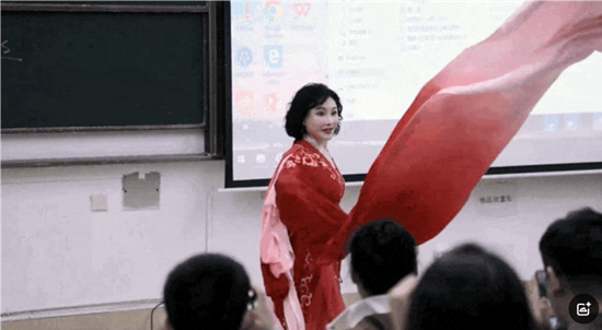 陈俐在南昌大学的课堂上给同学们表演挥水袖