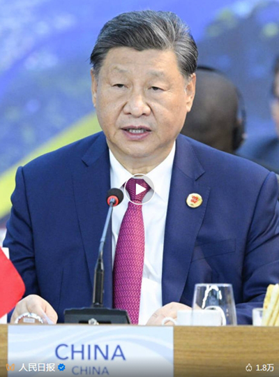 当地时间11月18日上午,国家主席习近平在巴西里约热内卢出席二十国集团领导人第十九次峰会。在峰会第一阶段围绕“抗击饥饿与贫困”议题讨论时,习近平发表题为《建设一个共同发展的公正世界》的重要讲话。新华社记者 李学仁 摄