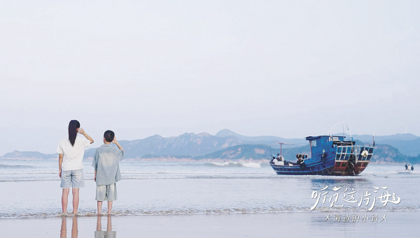 片中,白色的浪花、蓝色的海面、海边陡峭的悬崖、缝补渔网的海边人、海边小镇上的烟火人生等与“海”相关的多重景象,丰满立体地呈现了福建的海洋景观和海洋文化。海洋诗歌的朗诵是舒缓抒情的,沙滩上爬行的小螃蟹是可爱鲜活的,孩子们对海说出的心里话是天真烂漫的,一栋栋新居是明亮欢乐的,曾经的苦难和忧愁塑造了向海而生的海边人的坚定、无畏和勇气,今天的海边人带着诗意走向更加美好的远方,共同打造中国式现代化的福建篇章。