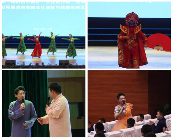 近日,新疆文联2024年“强基工程”——新春特别行动暨“我们的中国梦——文化进万家”活动在新疆消防救援总队开展。新疆文联石榴籽文艺志愿服务分队的志愿者们为指战员送去舞蹈《掀起你的盖头来》《各民族舞蹈》,歌曲《可可托海的牧羊人》《唱支山歌给党听》《新疆民歌联唱》《军营飞来一只百灵》,川剧《变脸》,古筝独奏《春到湘江》,魔术《幻彩》,相声《歌曲达人》等13个节目。精彩纷呈的演出赢得阵阵掌声,现场的喝彩声此起彼伏。活动现场,书画家们饱蘸浓墨、尽抒豪情,把对消防指战员的关爱之情注于笔端,向训练与战勤保障支队的指战员赠送了现场创作的30余幅书画作品。