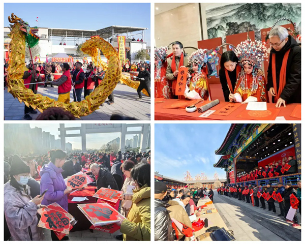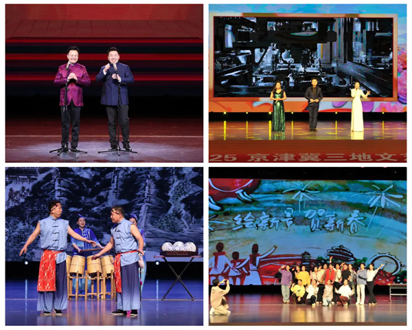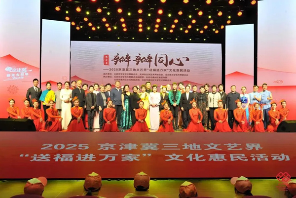1月6日,北京市文联、天津市文联、河北省文联共同举办京津冀三地文艺界“送福进万家”走进北京城市副中心文化惠民活动,2025年北京市区文联“福满京城 艺润万家”250余场春节文化惠民系列活动同时启动。 活动以“瓣瓣同心京津冀”为主题。由北京市文联副主席、北京曲协主席李伟建携弟子亢立飞演绎的相声《京津冀一家人》,由三地文联推荐艺术家共同演唱的京津冀协同发展纪录片主题曲《瓣瓣同心》,还有快板《津城春韵》、口技《运河声声》等节目,展现京津冀三地文化特色,并将各自的文化元素紧密融合,勾勒出京津冀地区丰富多彩、相融互促和积极奋进的文化风貌。